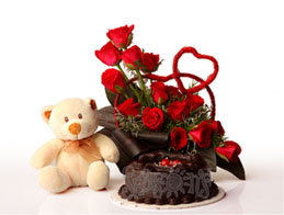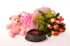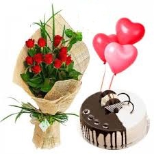 kg Chocolate cake and 6 Red Roses 2 Balloons