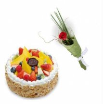 1 Red Rose with 1/2 Kg Fresh fruit cake