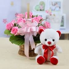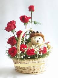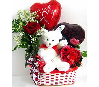 Roses 2 Teddy bears ( 6 inches) Valentine heart in a basket