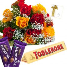 18 Red and Yellow Roses basket with 1 Toblerone chocolate 2