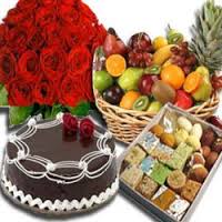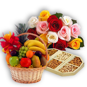 1/2Kg Cake, Fruits Hamper & Bouquet
