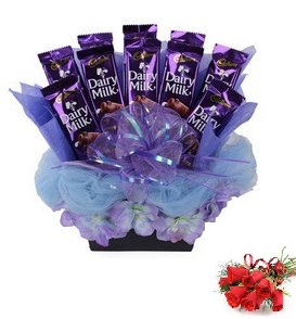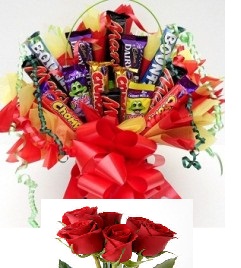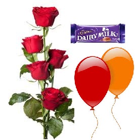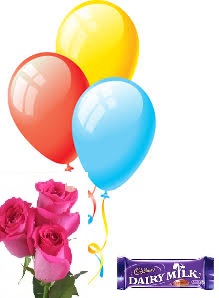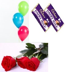 Milk Chocolates and 3 Red Roses 3 Balloons