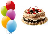 heart balloons + 10 Red Roses and half kg White Forest cake